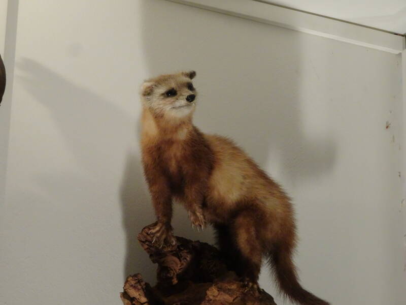 Anders: Je kunt ook opgezette dieren bekijken, zoals een korhoen, gaai, buizerd en een hermelijn. Ook zijn er 2 schedels van reeën te zien, en 1 van een edelhert. Bij sommige staat er een informatie tekst bij. Op de vensterbank ligt een Campo del Cielo meteoriet van 4,5 miljard jaar oud uit Argentinië. Ook zie je hier een slang op sterk water en 7 posters over verschillende onderwerpen. Ook kan je een mooie pauwenveer zien en als klap op de vuurpijl een vliegende wereldbol. Ook zie je hier de opgezette spin en vliegend hert.
